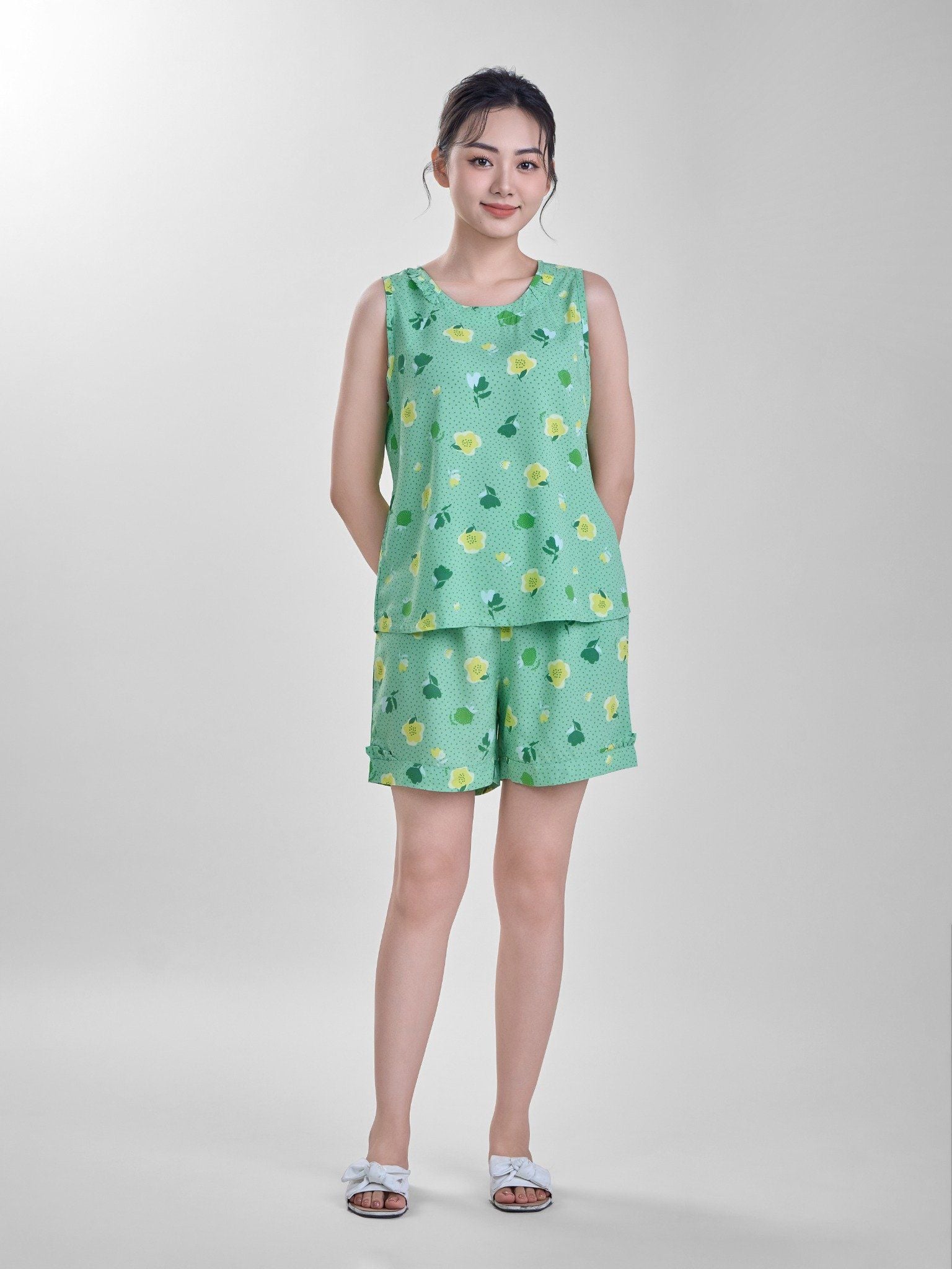 Bộ đồ mặc nhà Lanh quần ngắn không tay - 2MNLA24021B
