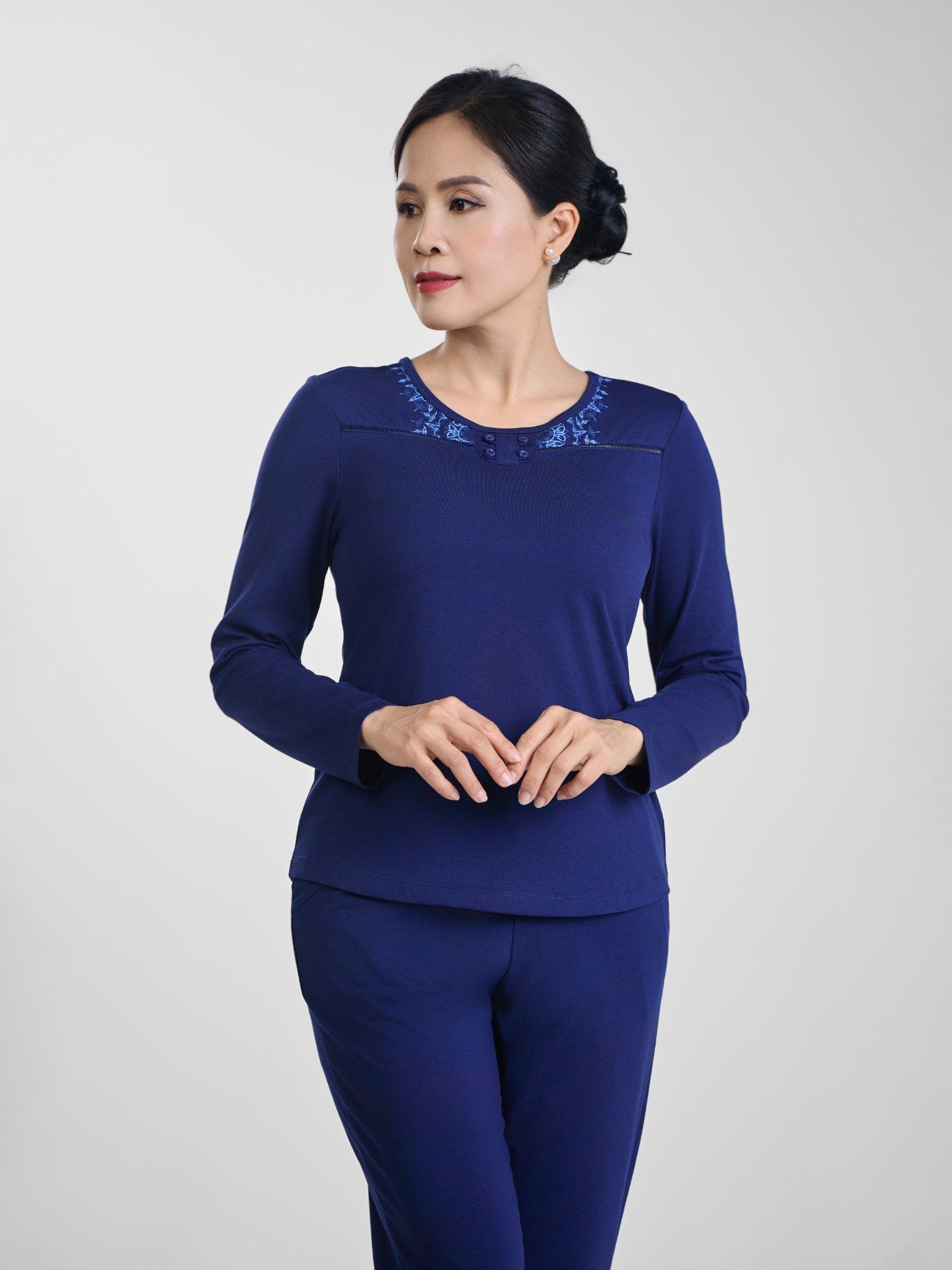 Bộ đồ mặc nhà trung niên CVC quần dài tay dài - 2MNCT24015D