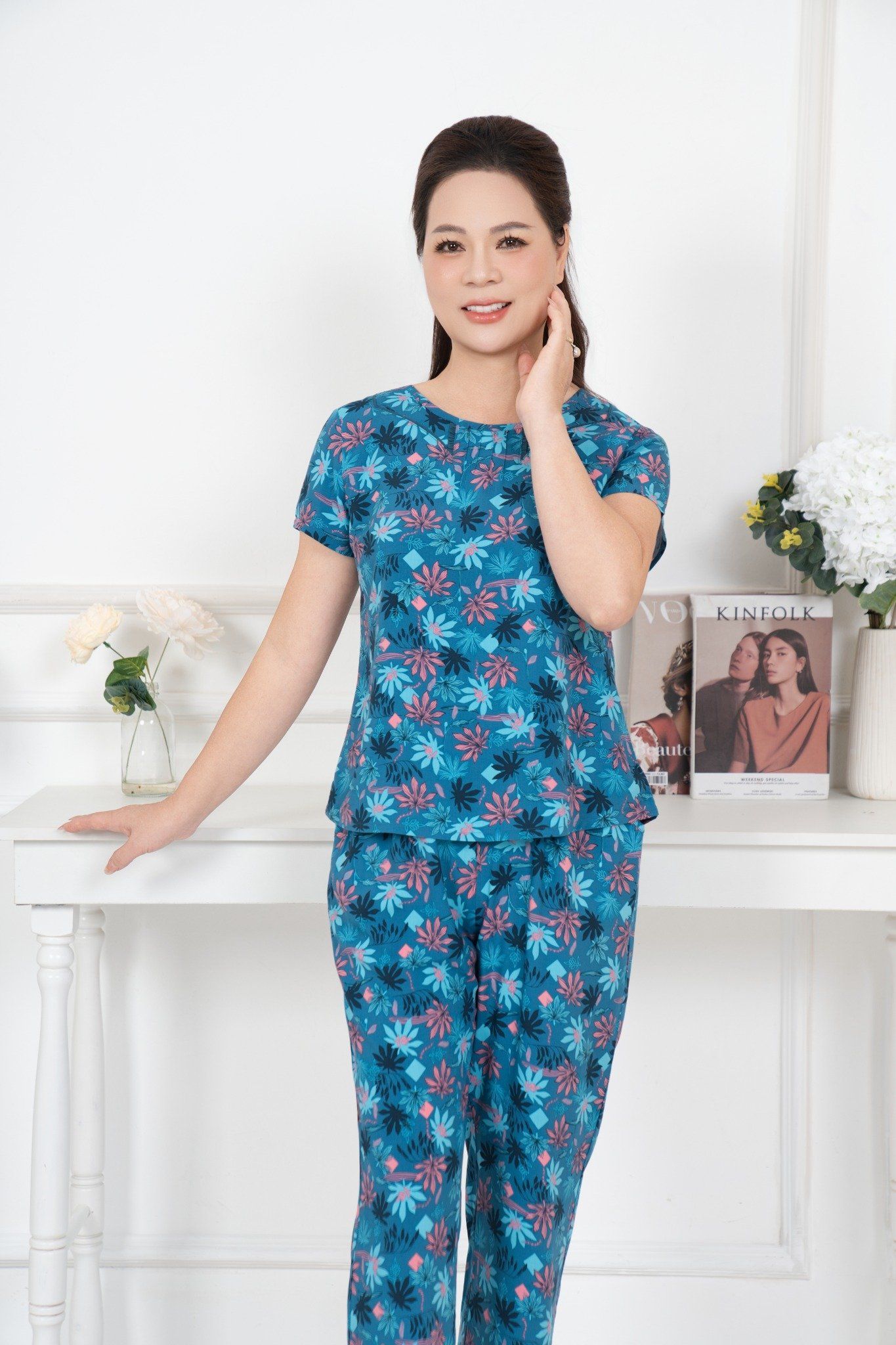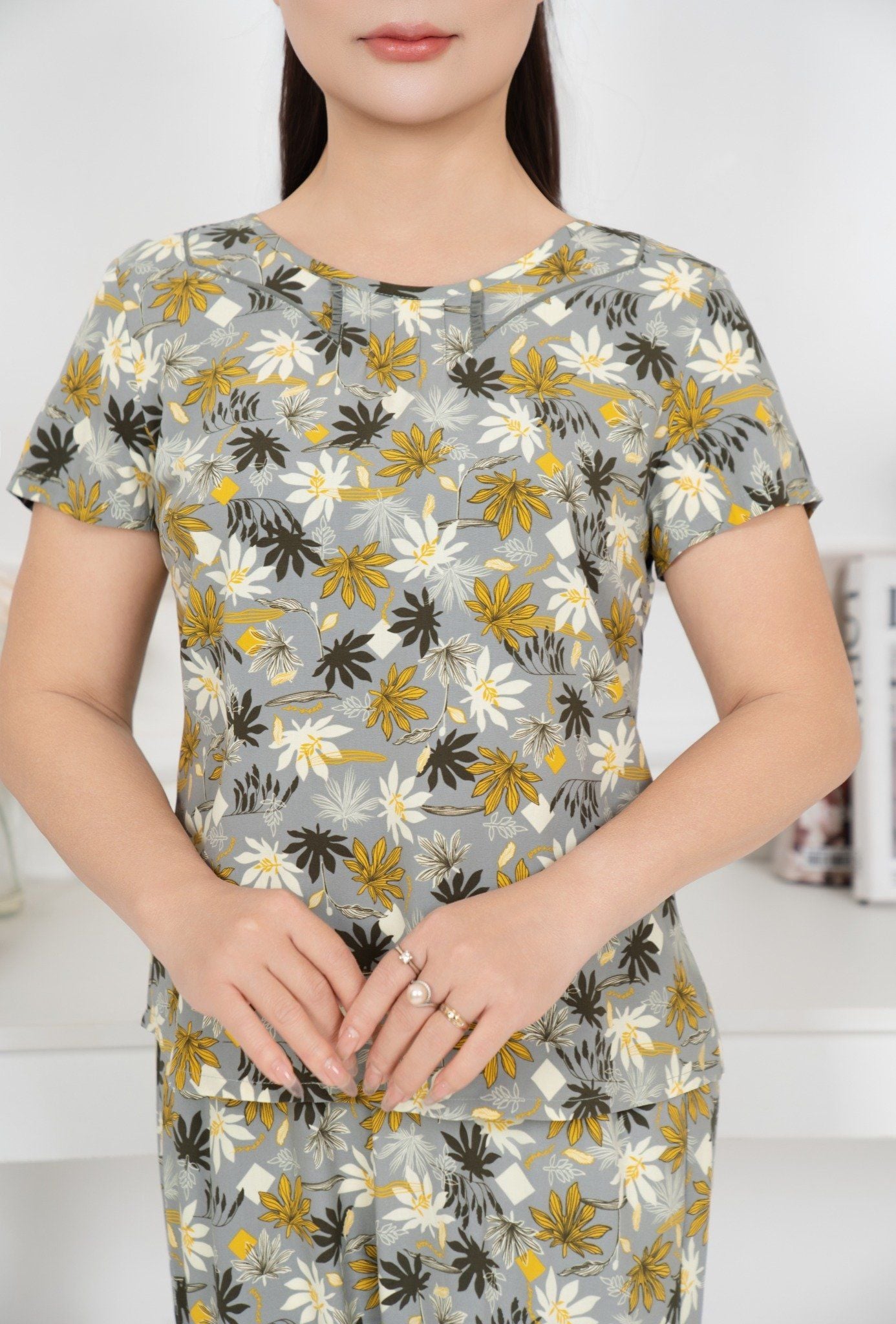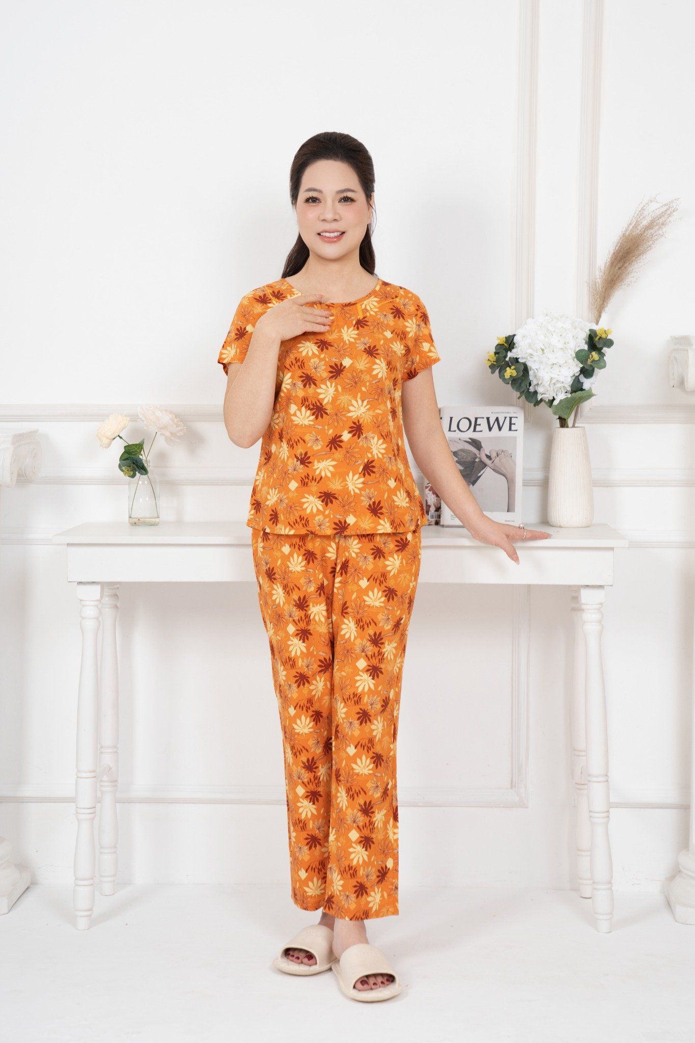 Bộ đồ mặc nhà trung niên Lanh quần dài tay ngắn - 2MNLA25019D