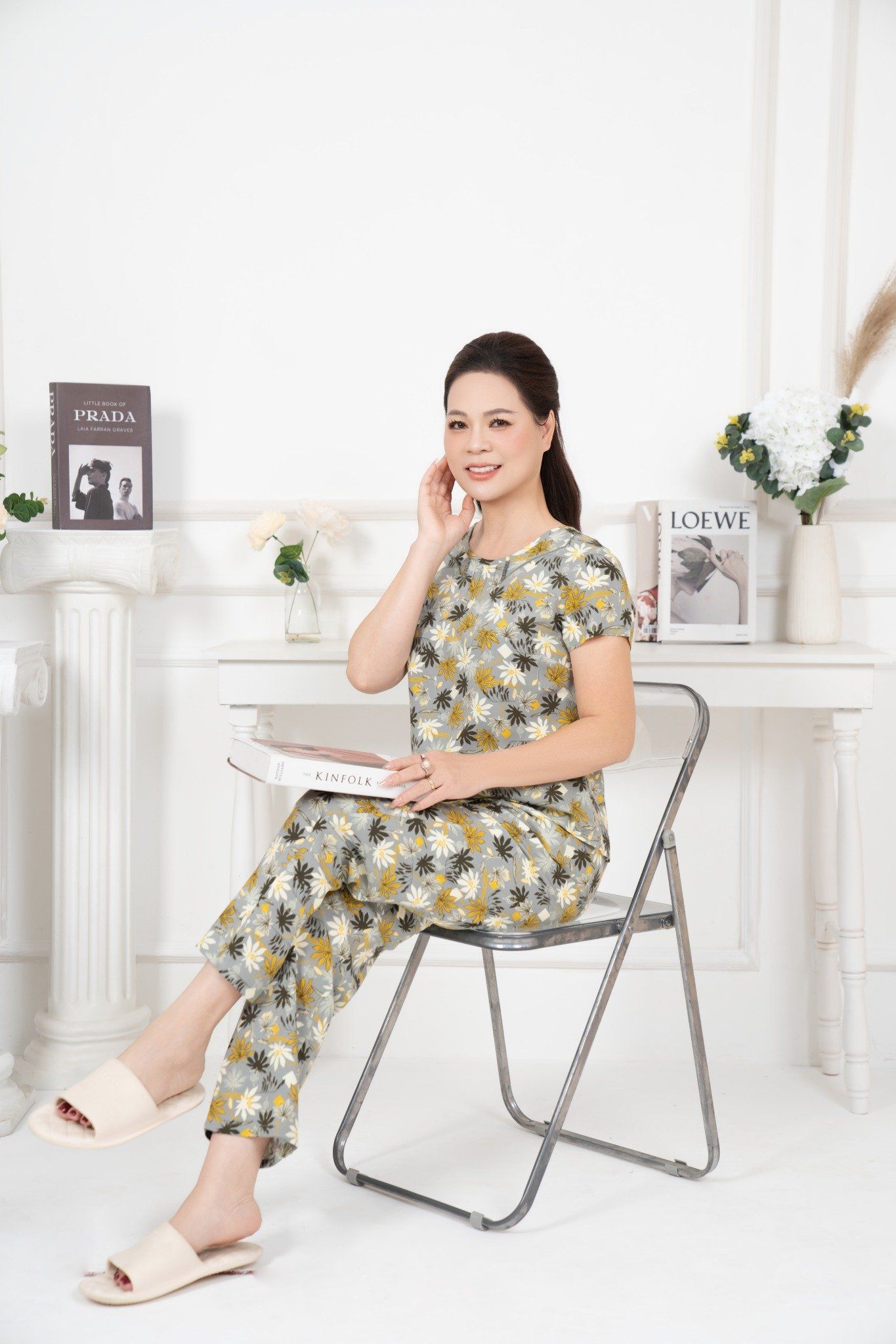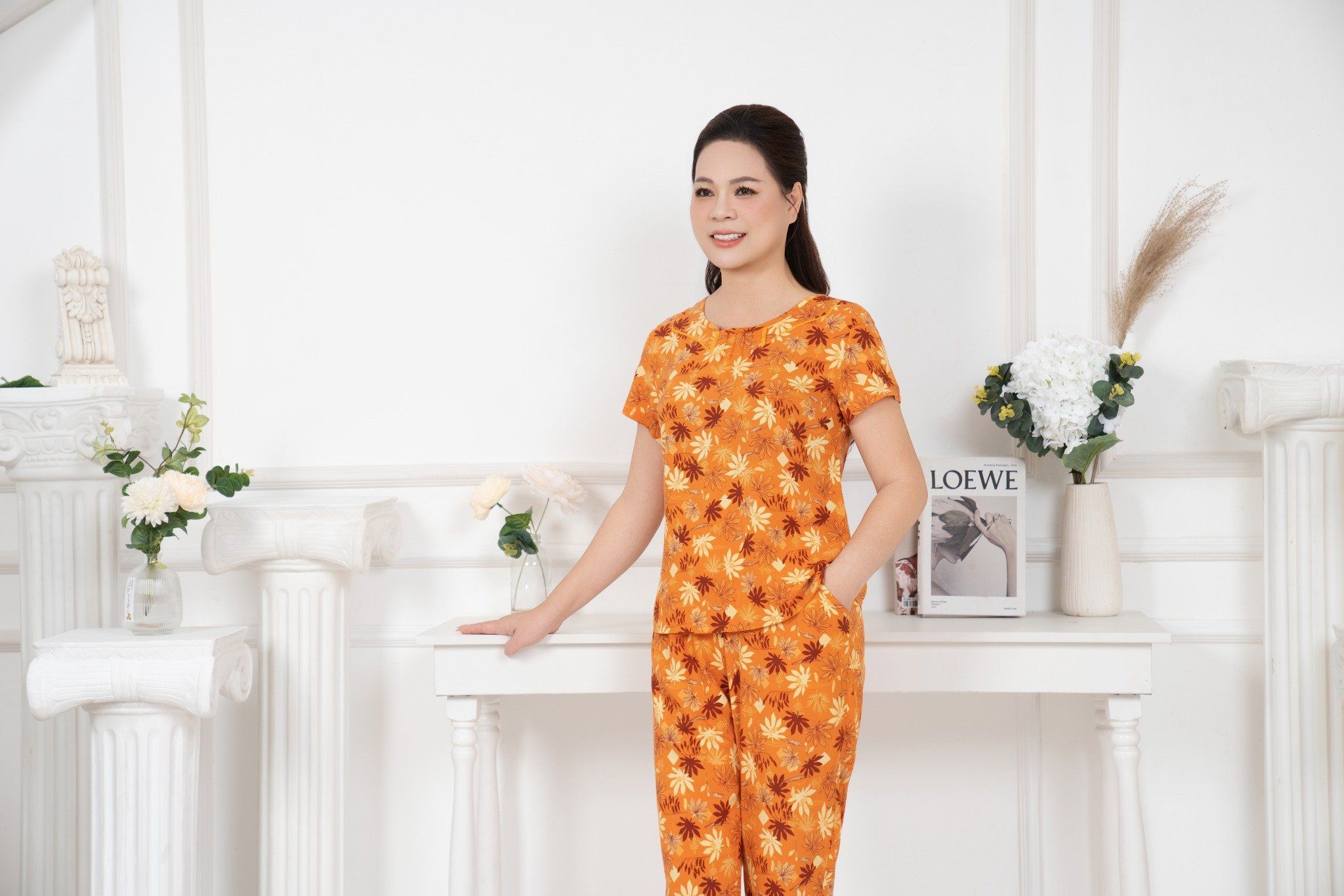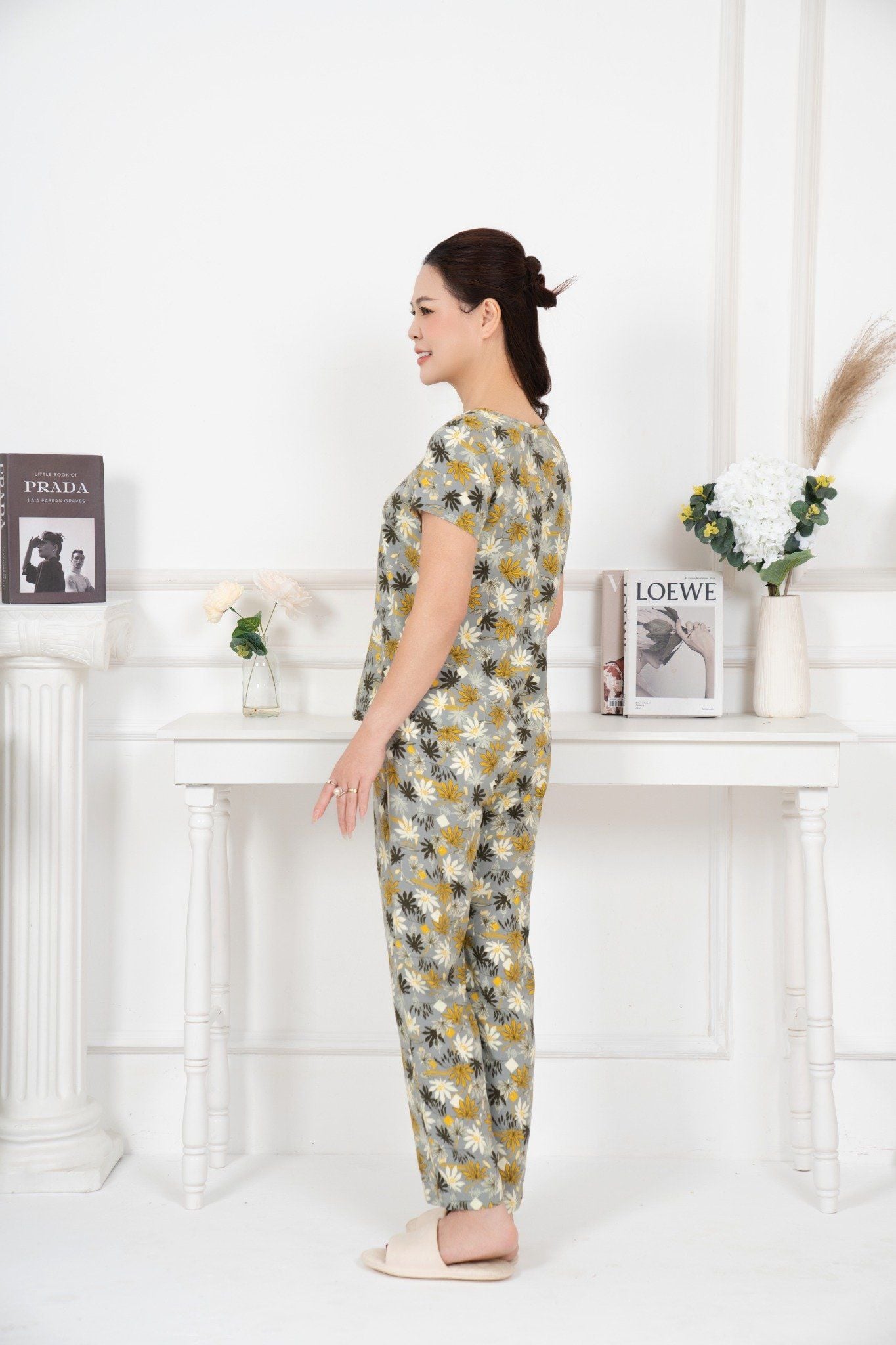 Bộ đồ mặc nhà trung niên Lanh quần dài tay ngắn - 2MNLA25019D