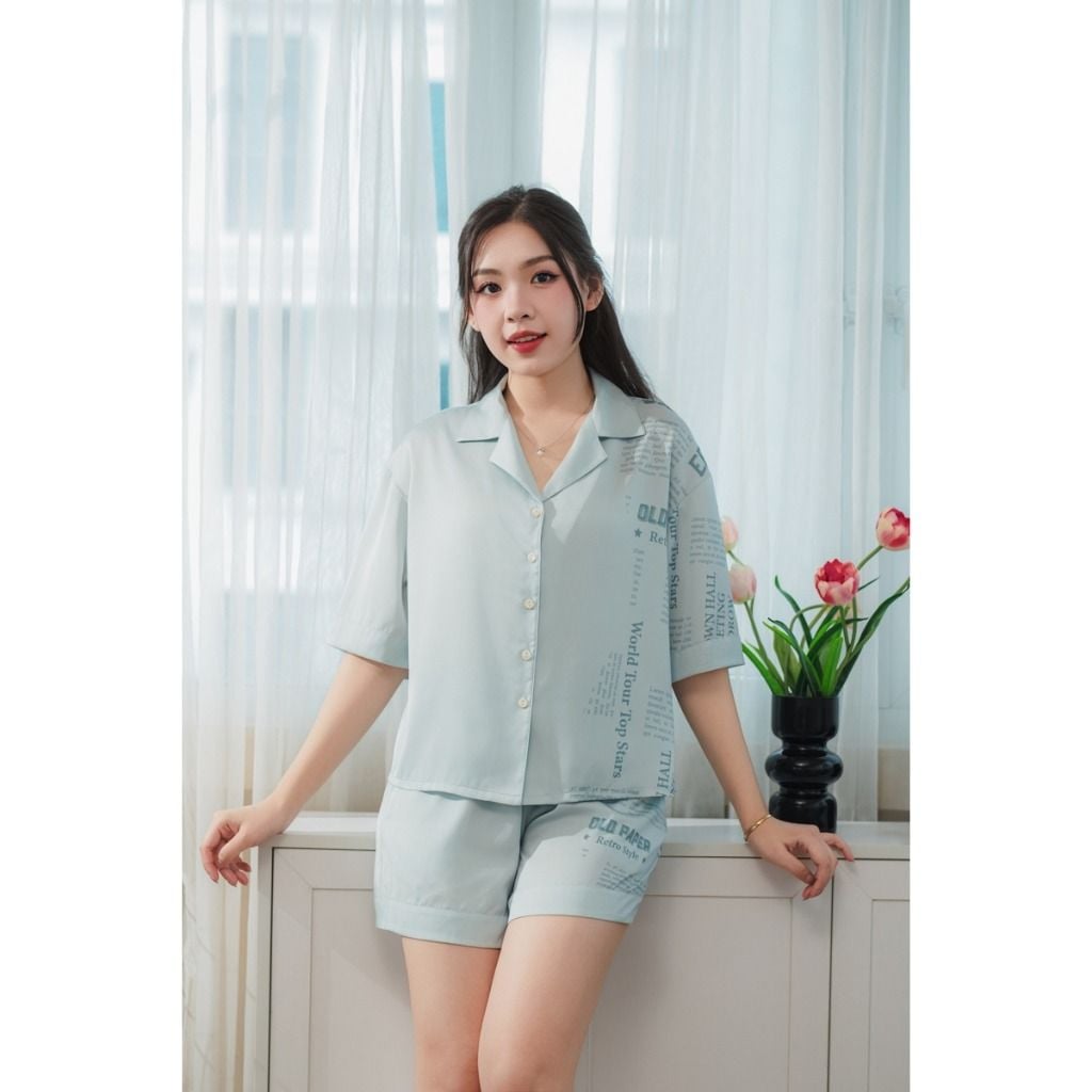 Bộ đồ ngủ Pijama lụa satin quần ngắn tay ngắn - 1MNSA25071C