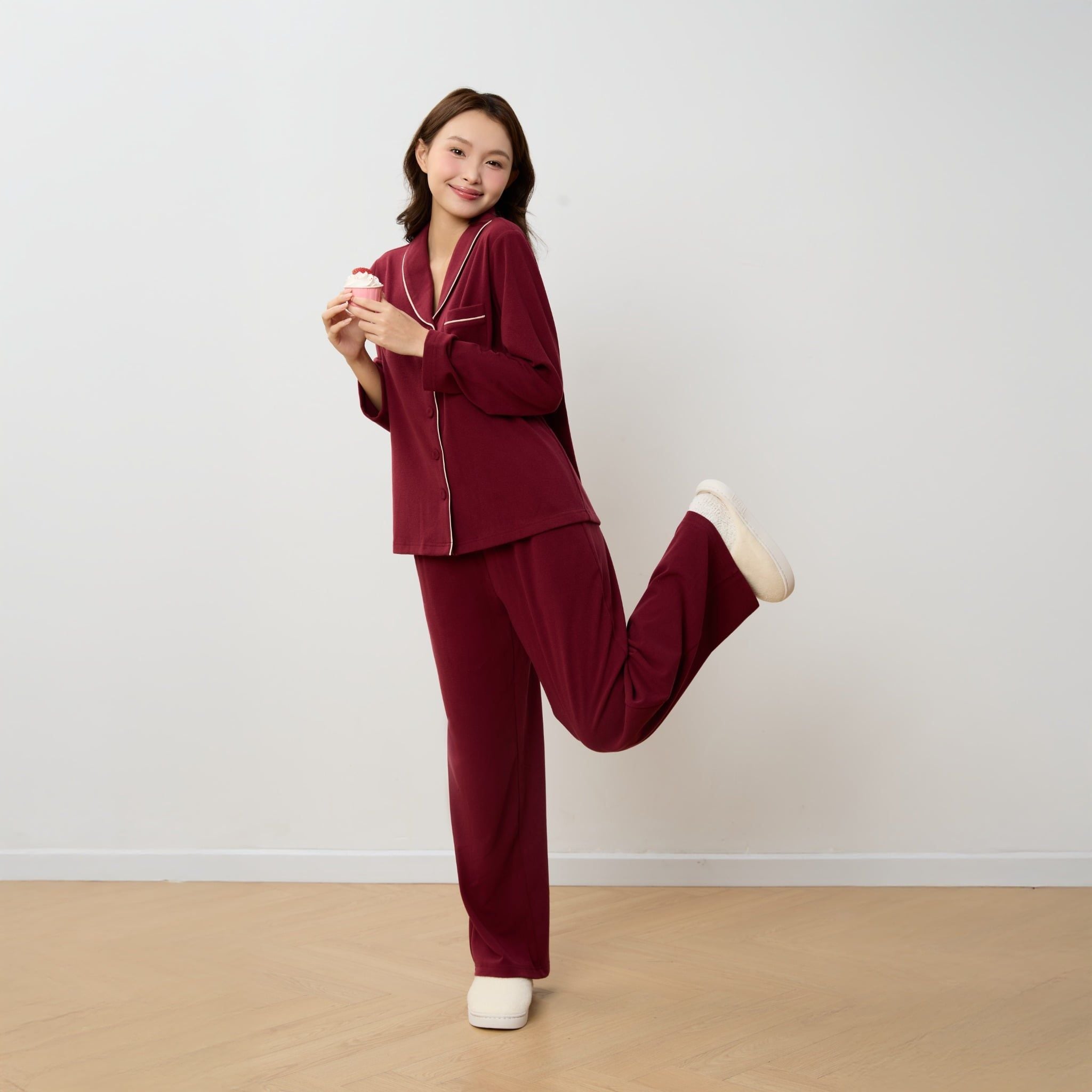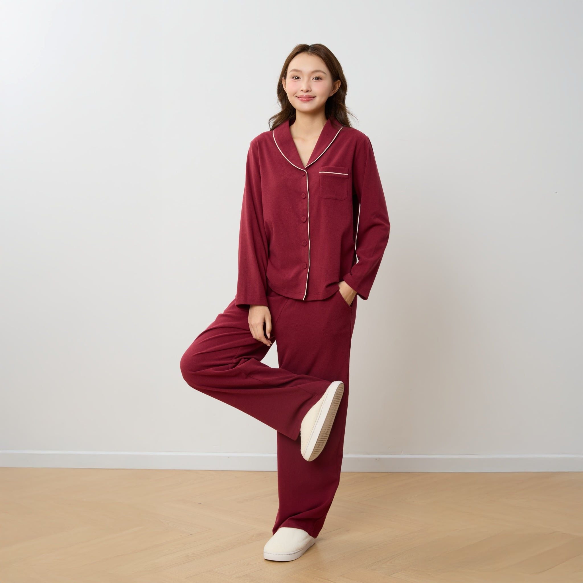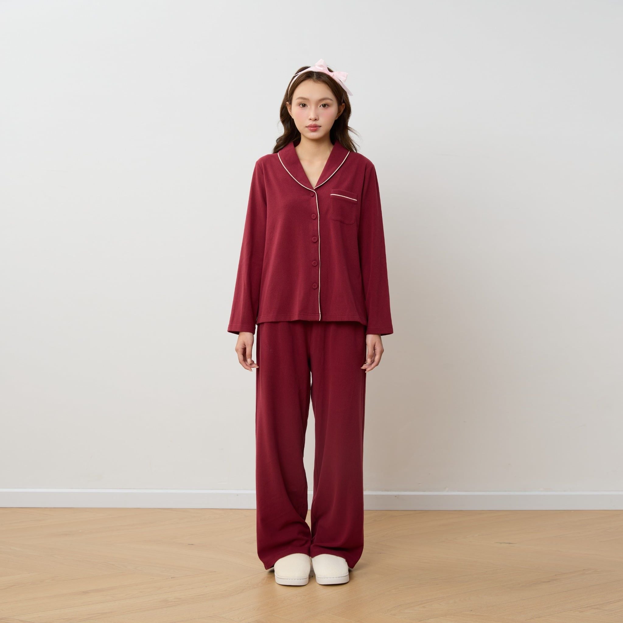 Bộ WINNY mặc nhà nỉ nhung quần dài tay dài màu đỏ đậm 1MNNN25002D