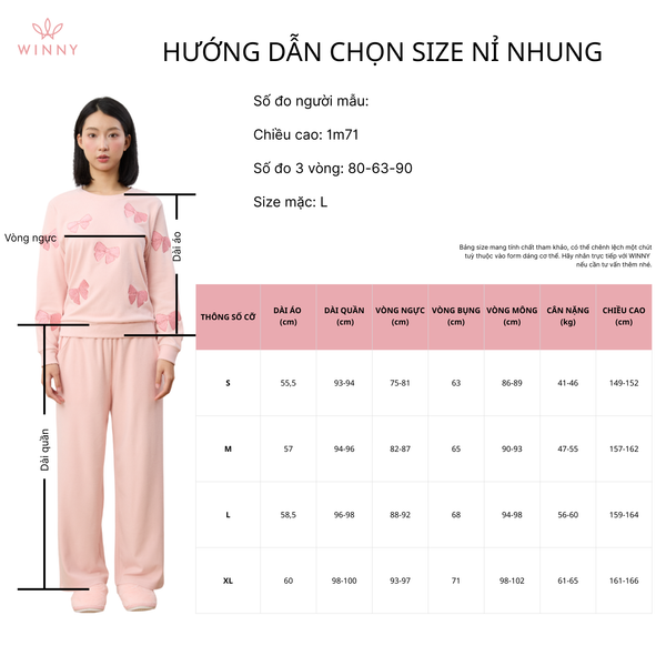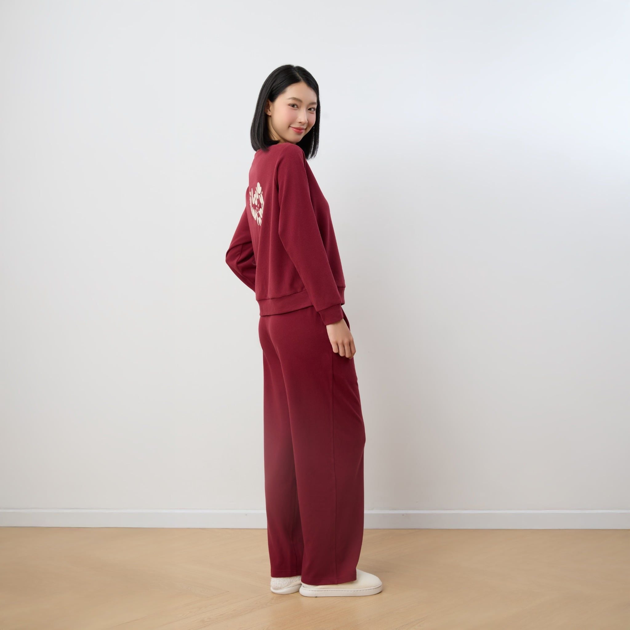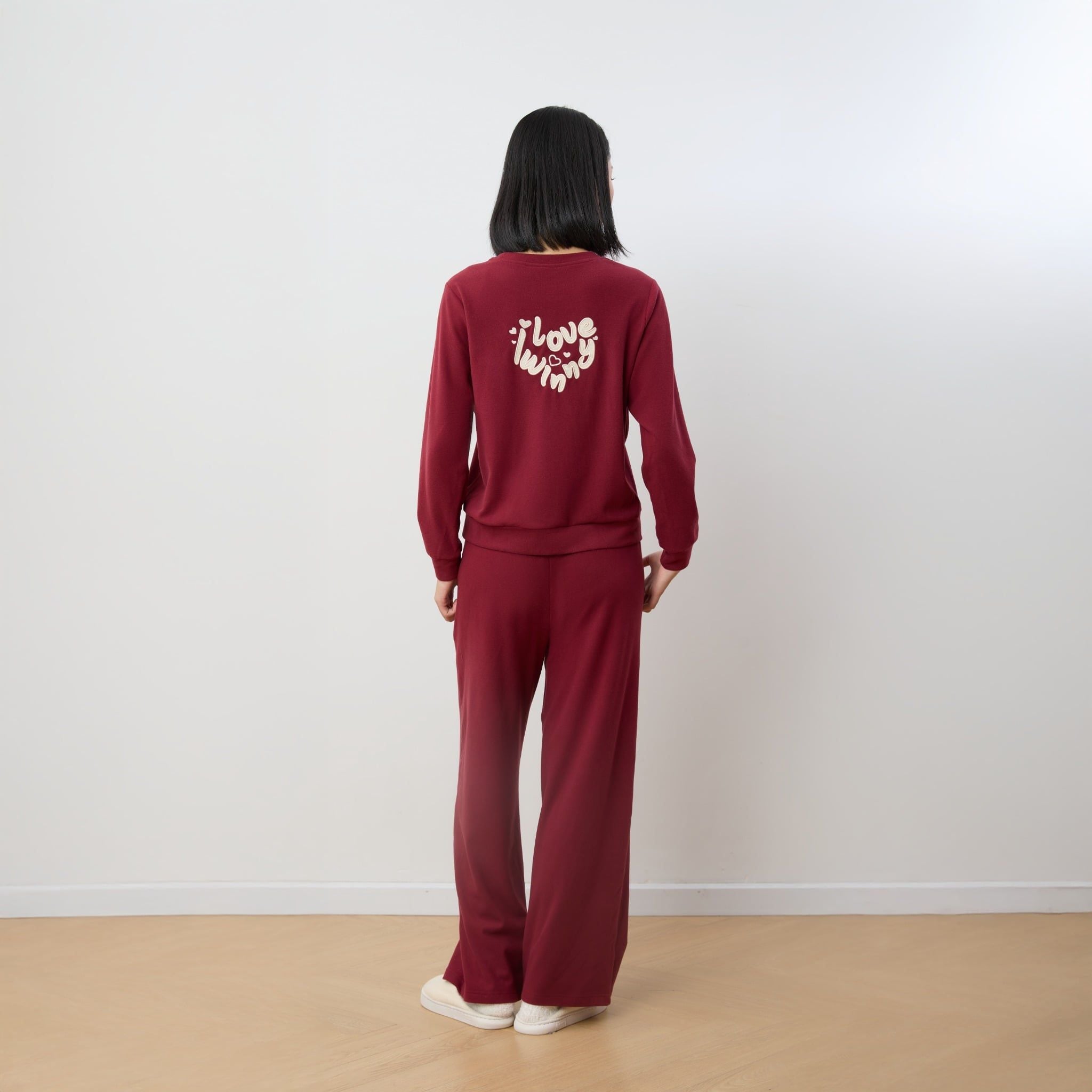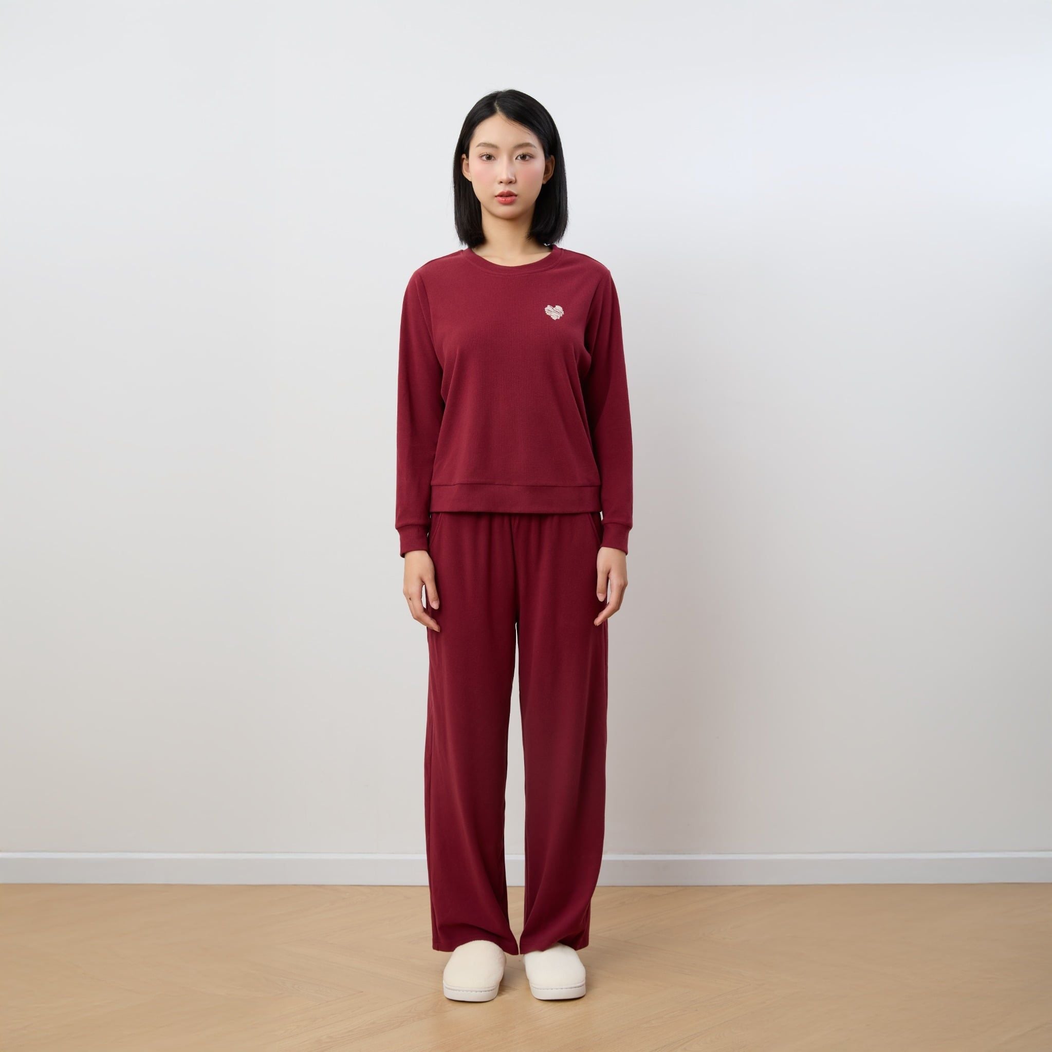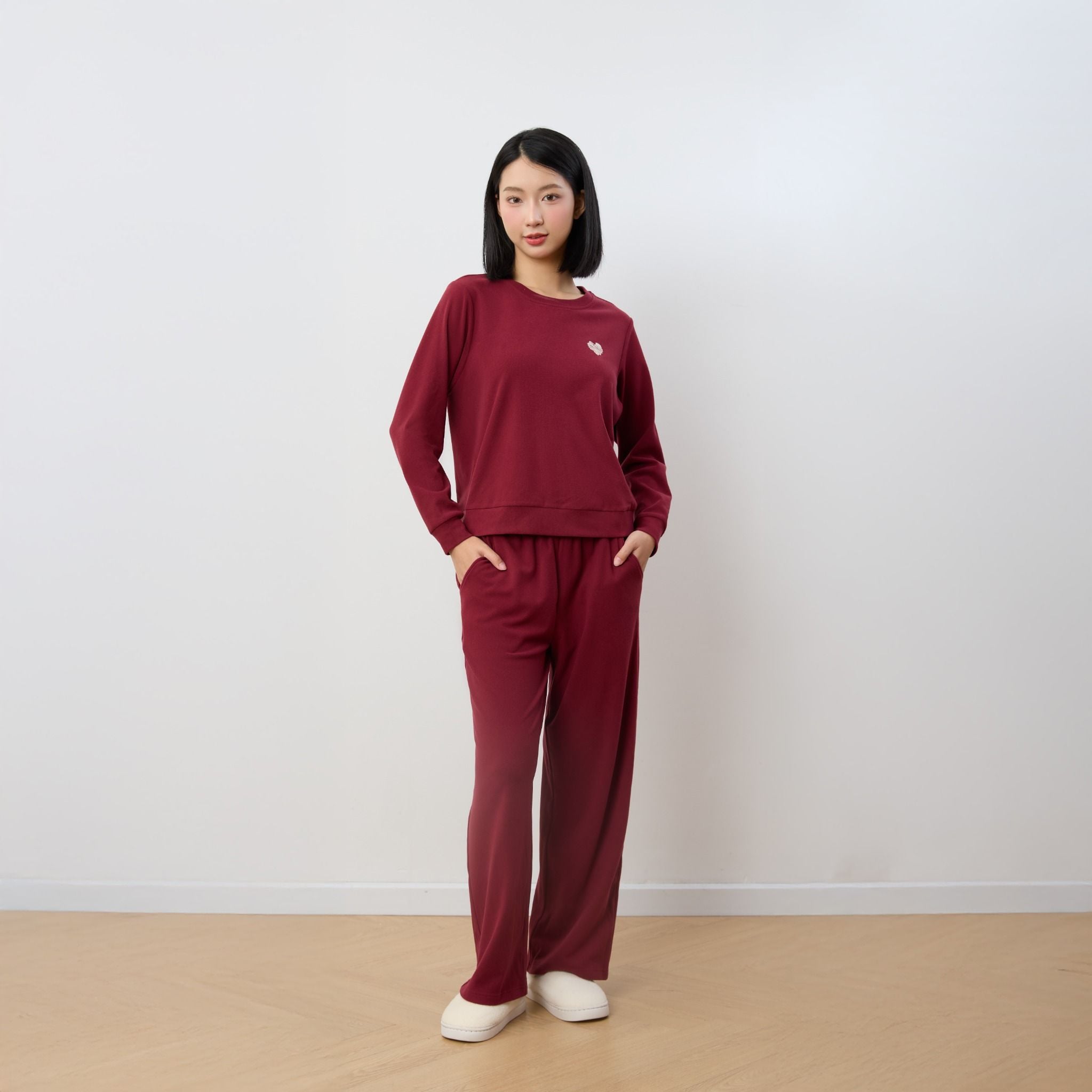 Bộ WINNY mặc nhà nỉ nhung quần dài tay dài màu đỏ đậm 1MNNN25009D