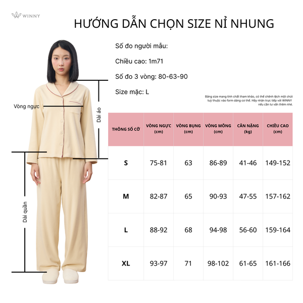 Độ dày: Vải dày, thoáng khí vừa phải, thích hợp cho trang phục mặc nhà vào thời tiết lạnh.