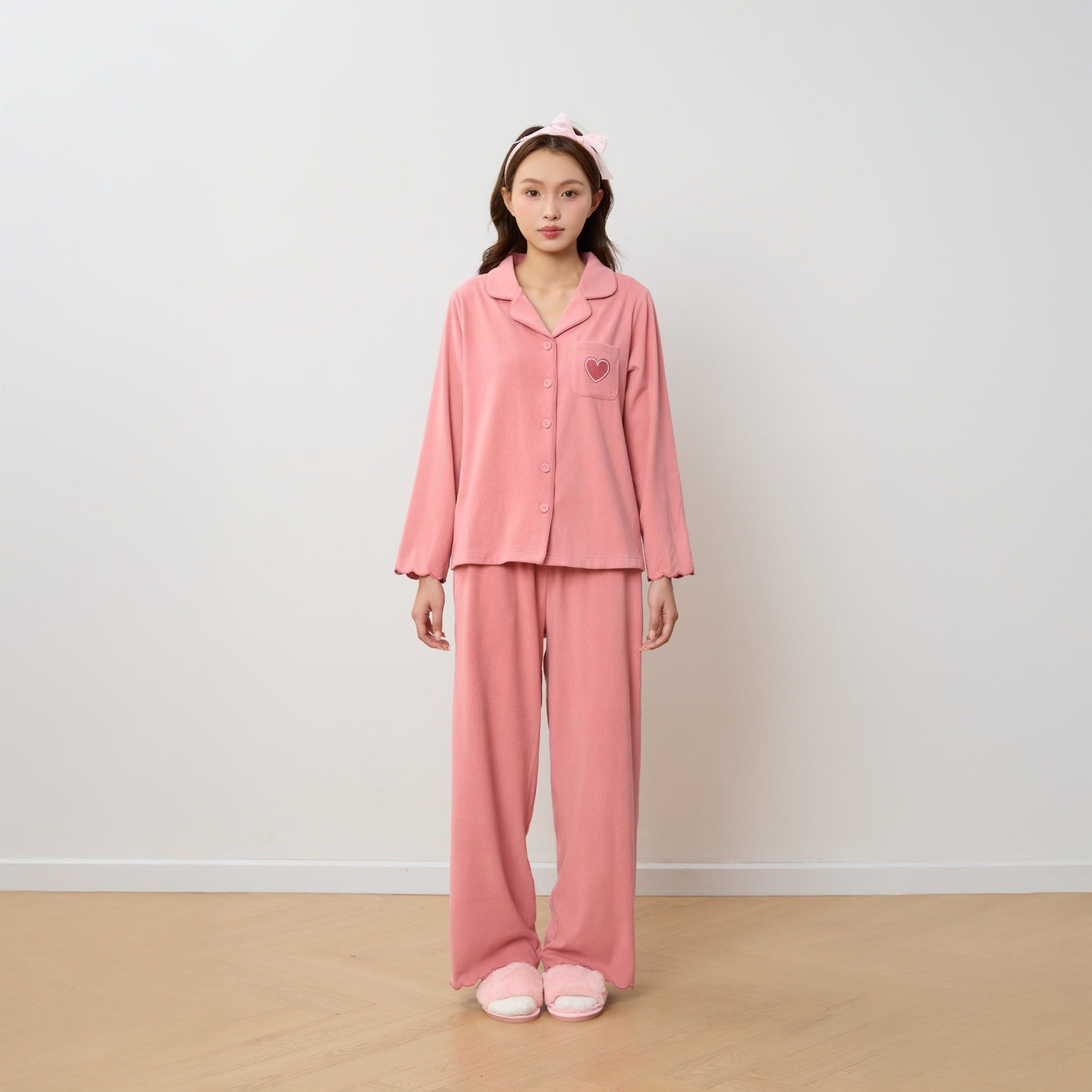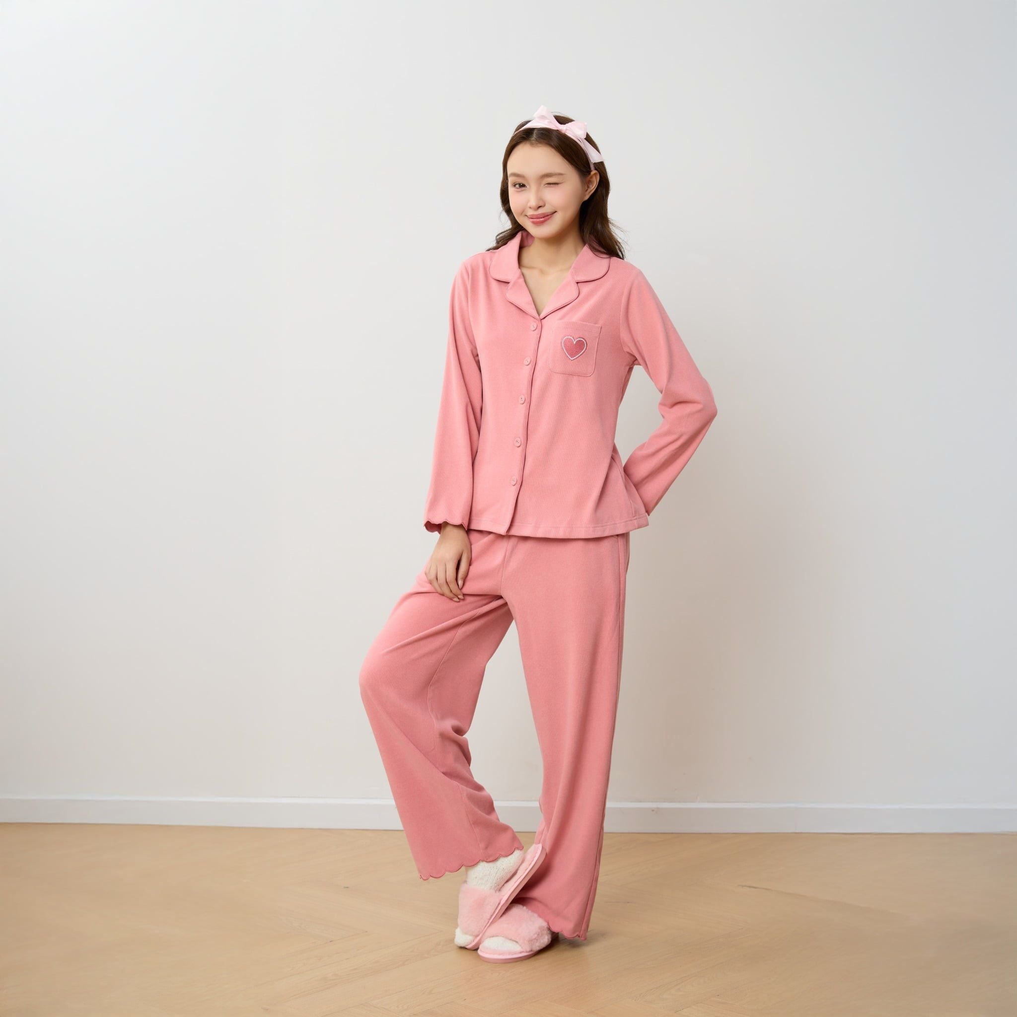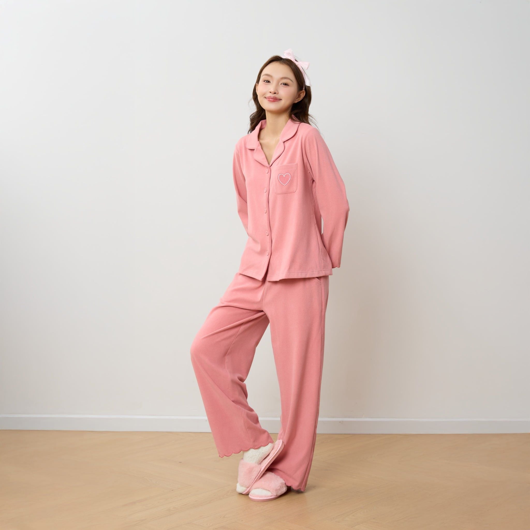 Bộ WINNY mặc nhà nỉ nhung quần dài tay dài màu hồng đậm 1MNNN25003D