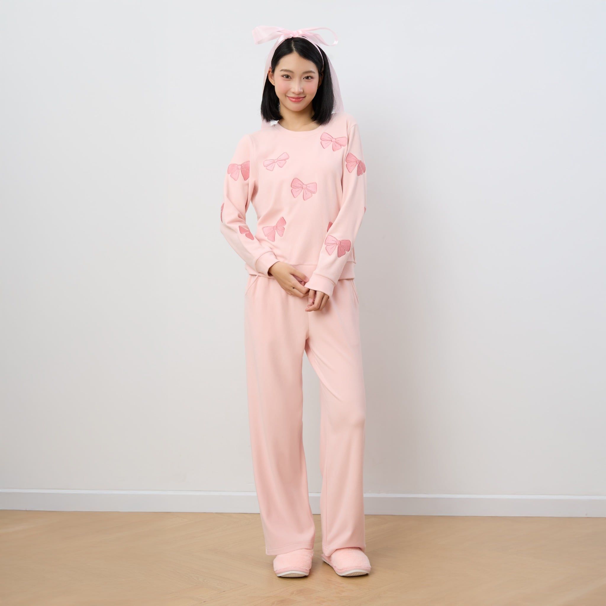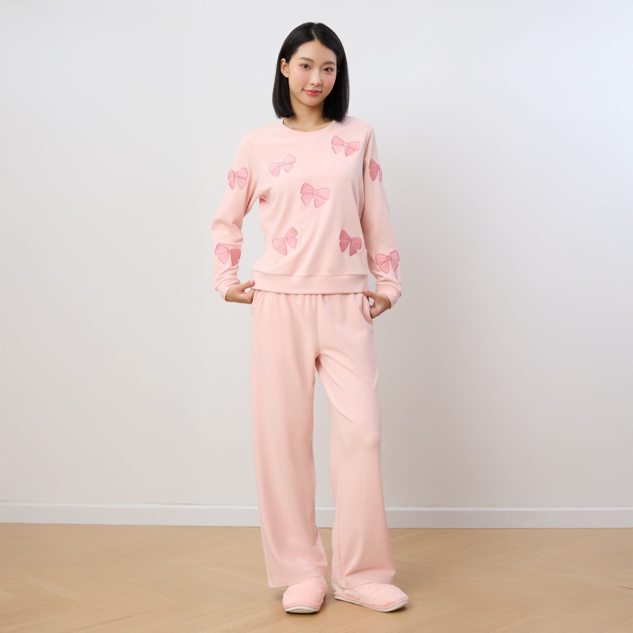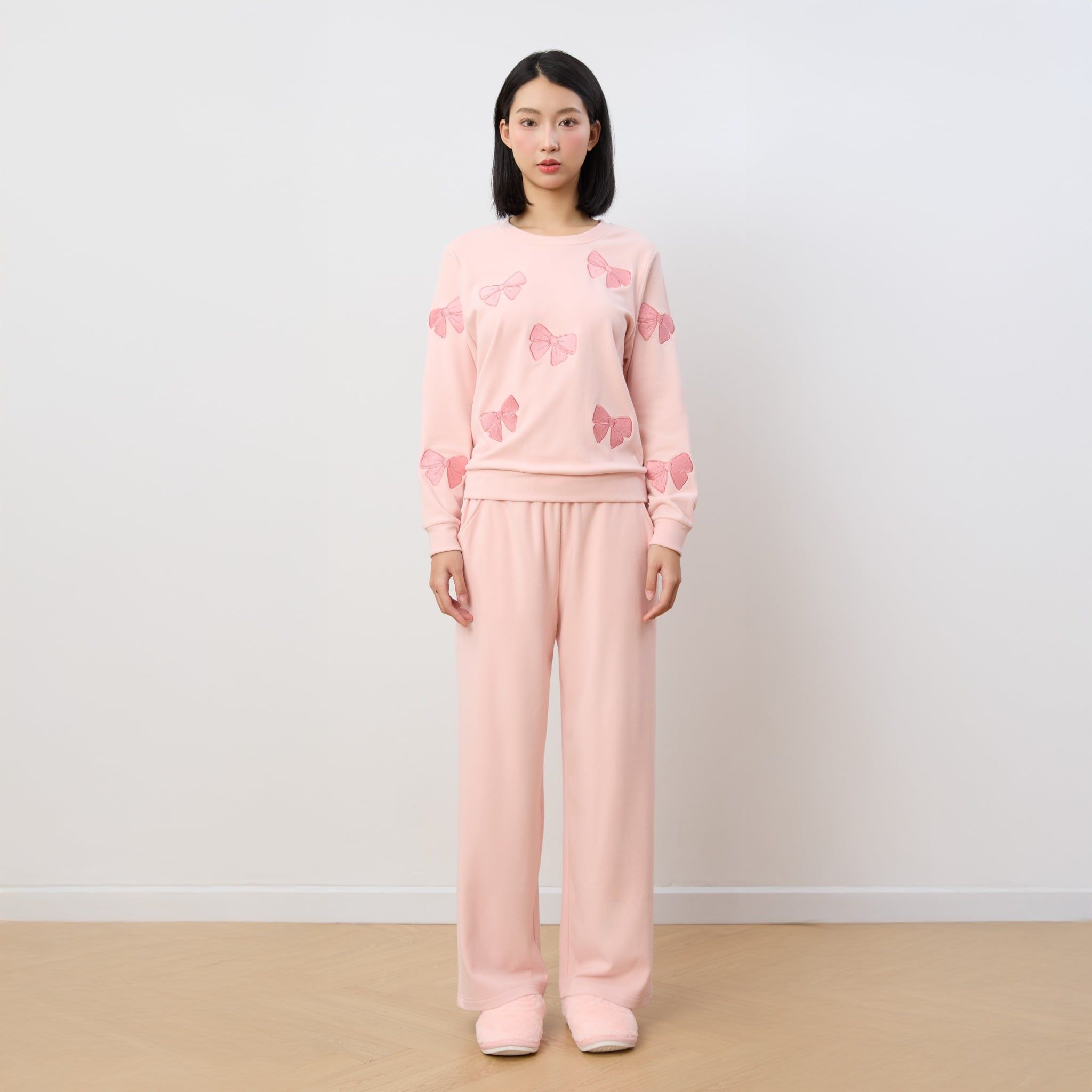 Bộ WINNY mặc nhà nỉ nhung quần dài tay dài màu hồng nhạt 1MNNN25006D
