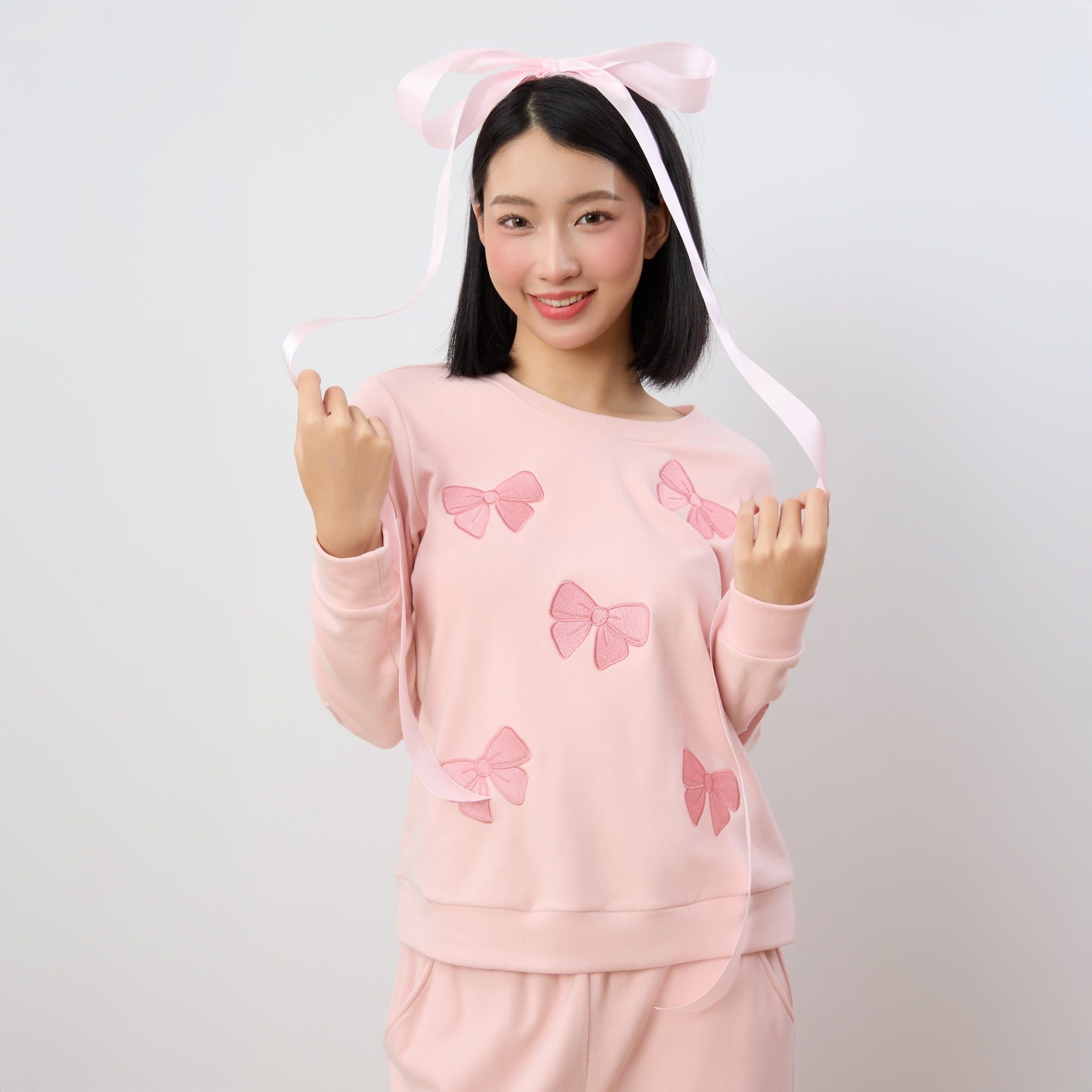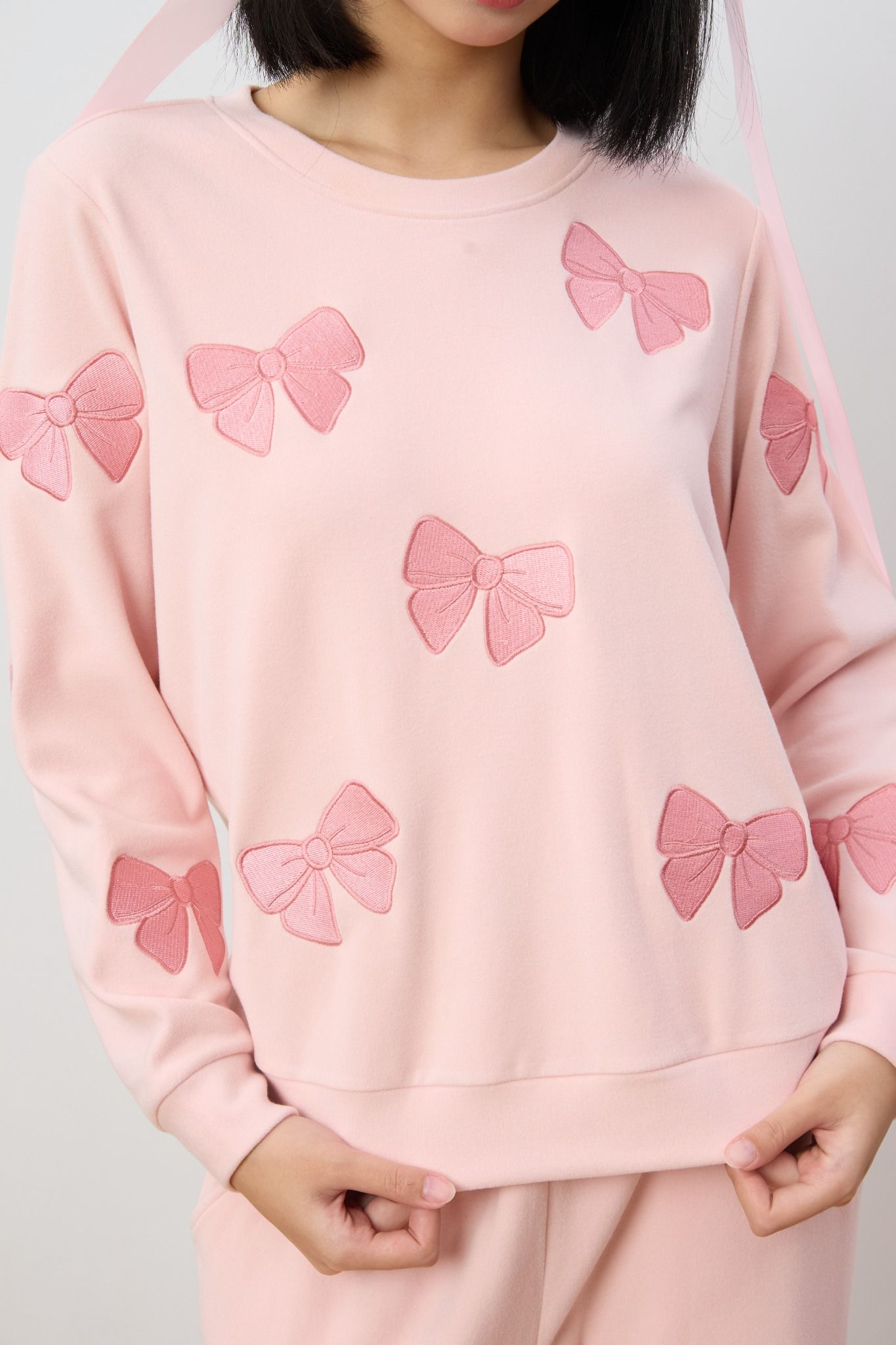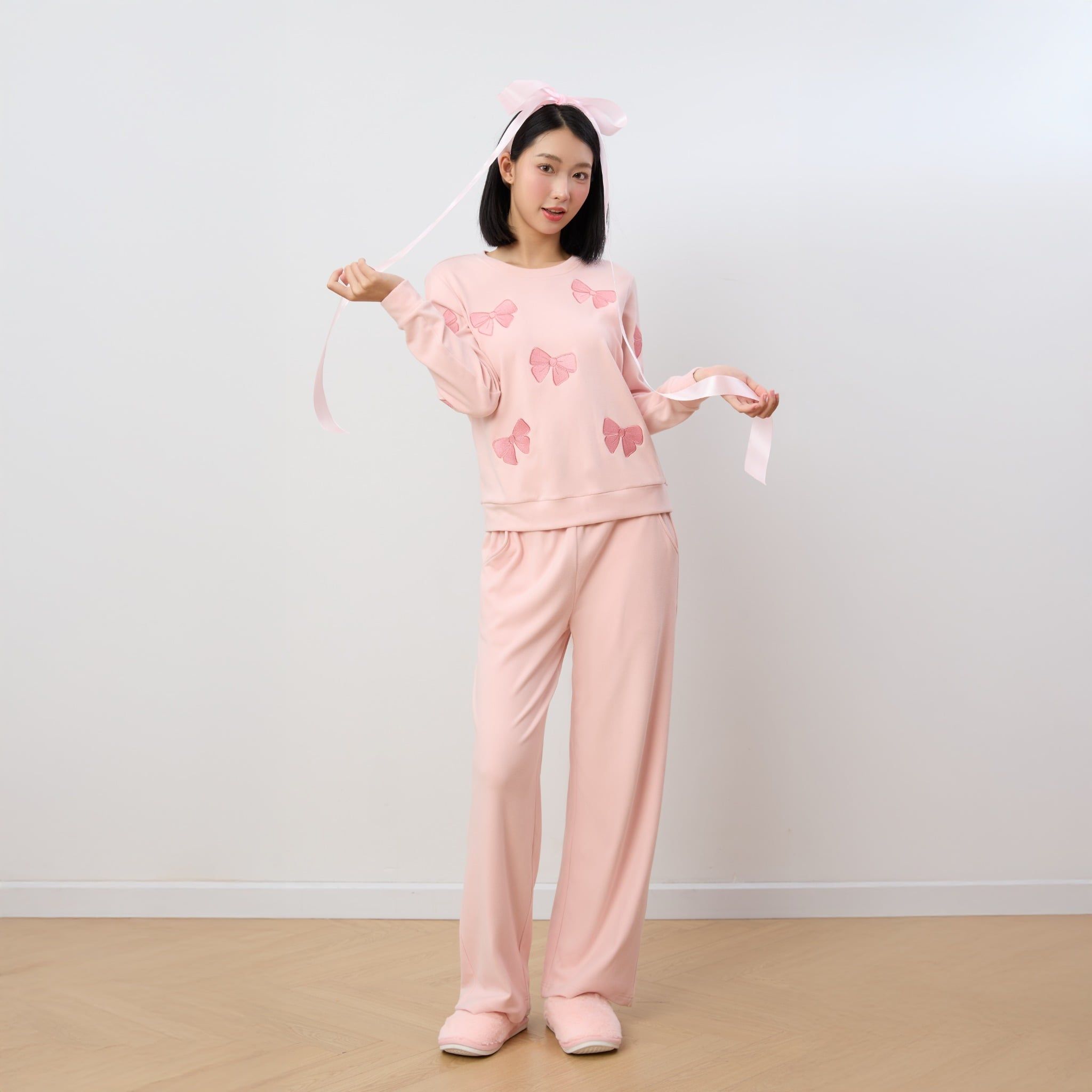 Bộ WINNY mặc nhà nỉ nhung quần dài tay dài màu hồng nhạt 1MNNN25006D
