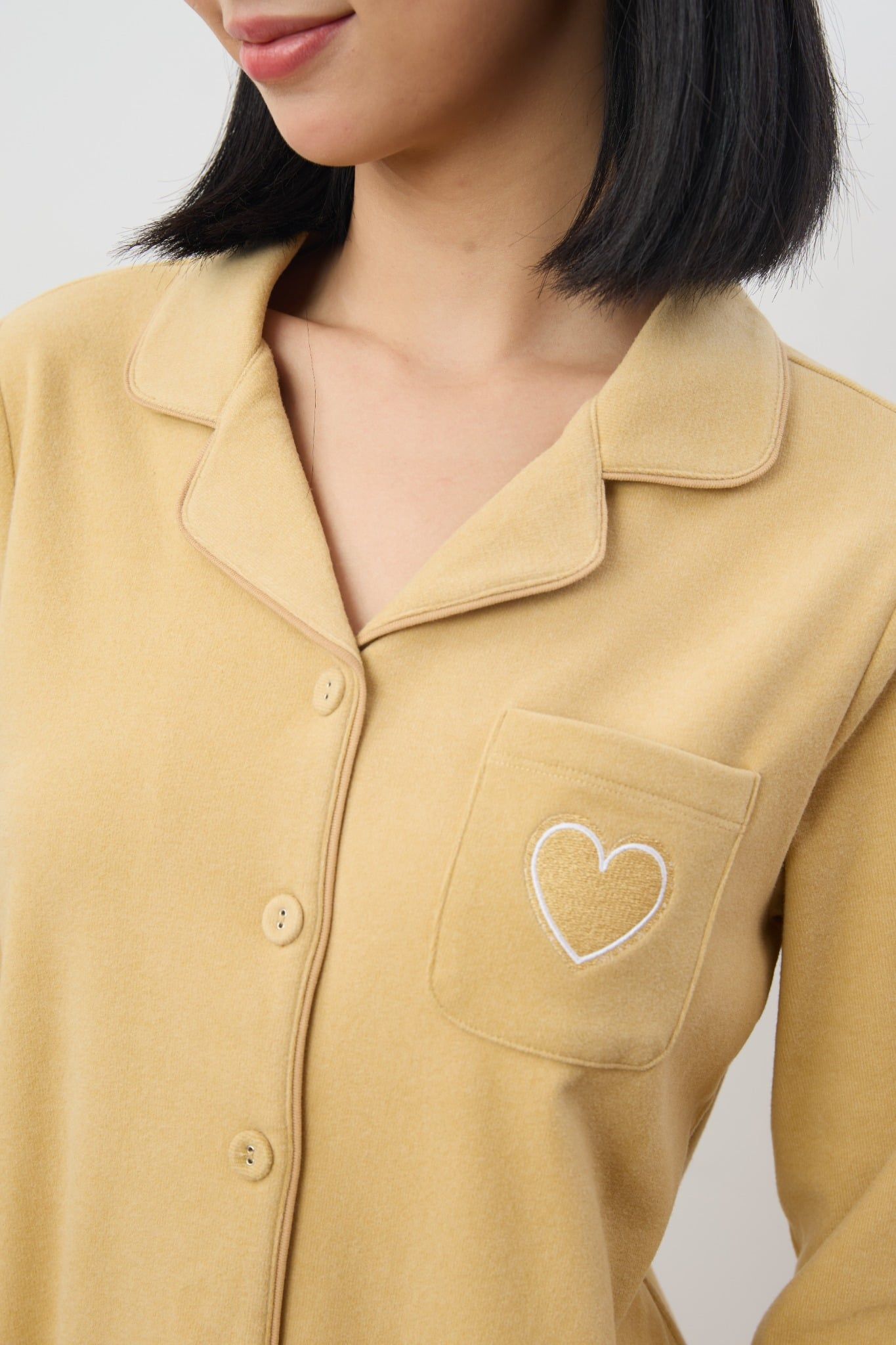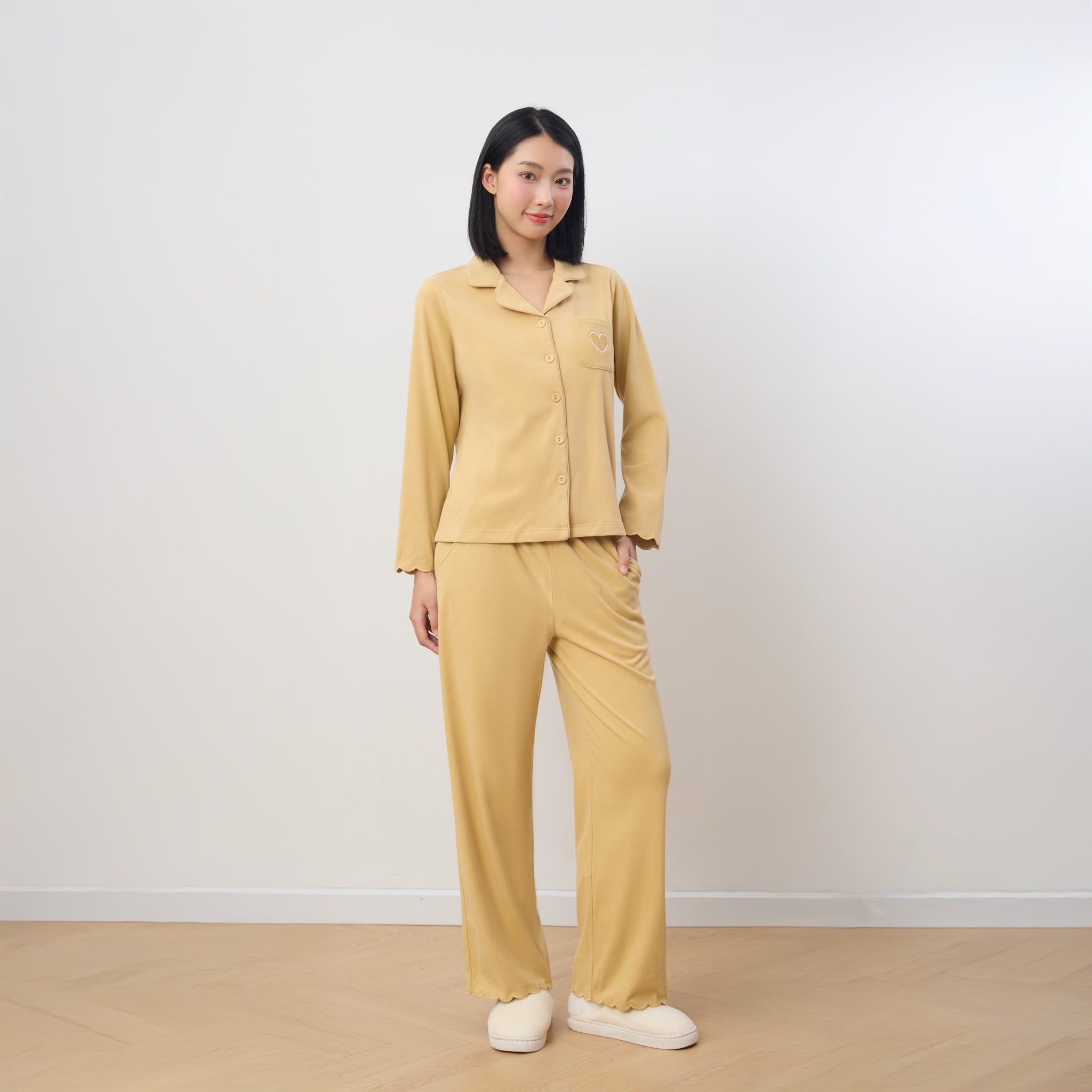 Bộ WINNY mặc nhà nỉ nhung quần dài tay dài màu vàng 1MNNN25004D