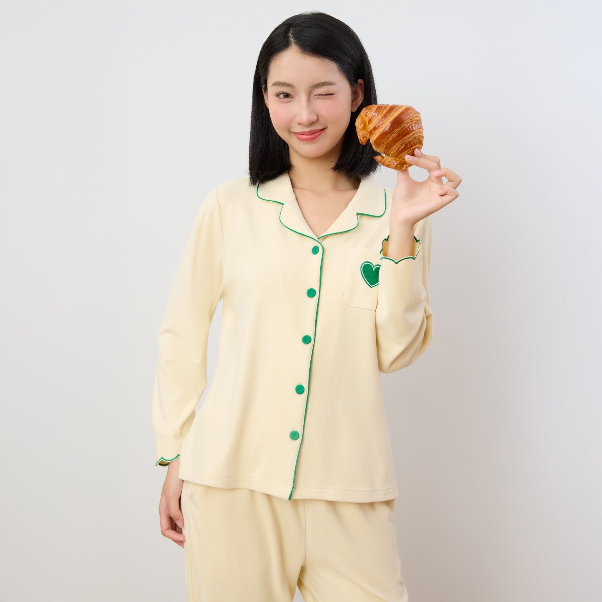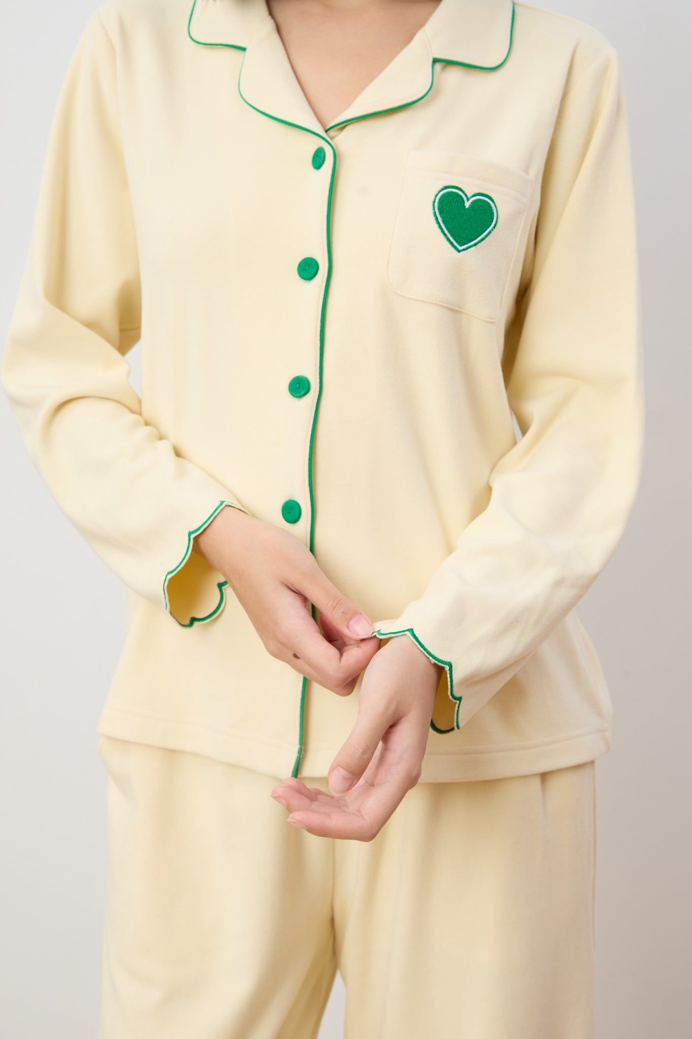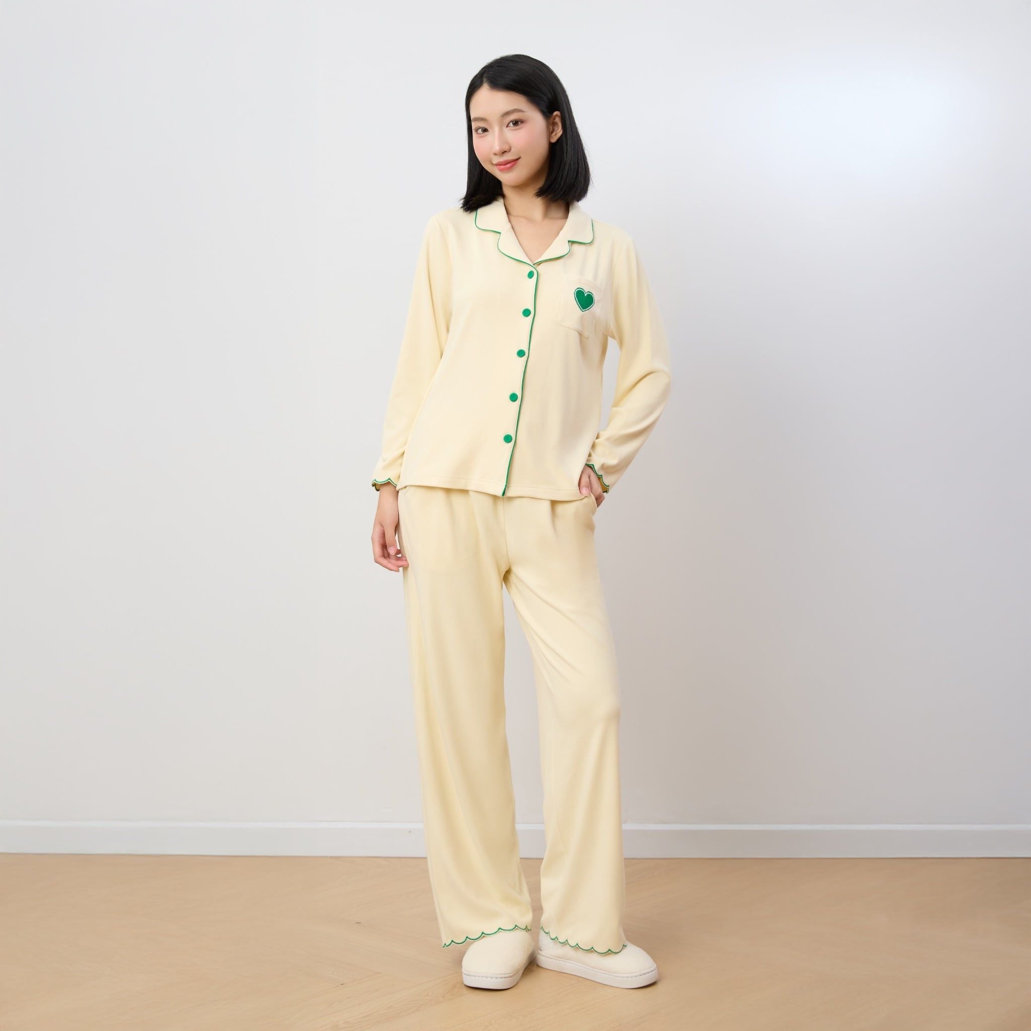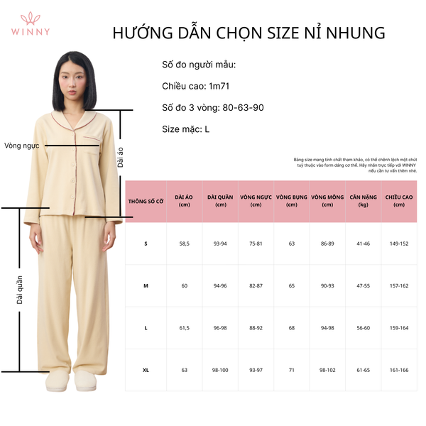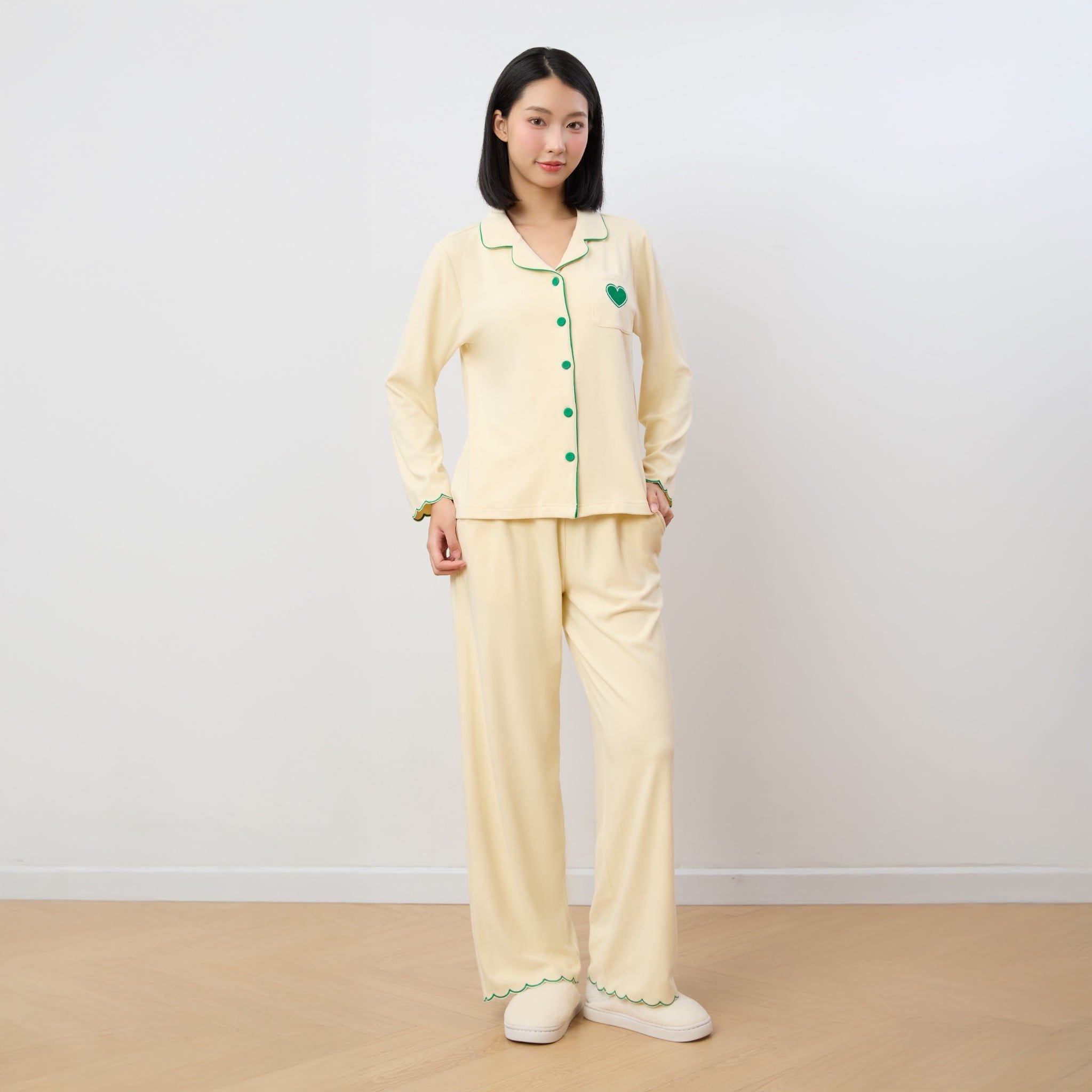 Bộ WINNY mặc nhà nỉ nhung quần dài tay dài màu vàng nhạt 1MNNN25005D