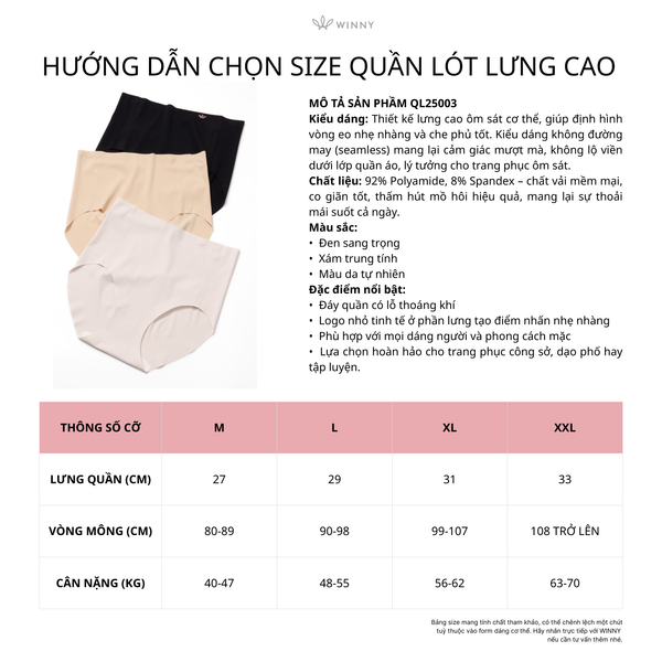 Quần lót su nữ Winny lưng cao không lộ viền mềm mại thấm hút thoáng khí QL25003 - Xám nhạt