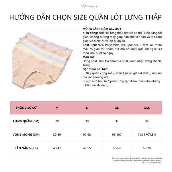 Quần lót su nữ Winny lưng thấp không đường may mềm mại thấm hút thoáng khí QL25001 - Tím